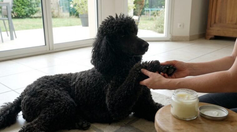 Avant même de franchir le seuil de la porte, l’application d’une couche généreuse de baume au beurre de karité sur les coussinets, la pointe des oreilles et le scrotum crée un film protecteur indispensable. Pourquoi le karité ? Parce qu’il nourrit en profondeur, certes, mais surtout parce qu’il forme une barrière mécanique contre l’humidité glaciale et les agents corrosifs des trottoirs urbains. Contrairement à certaines crèmes à base d’eau qui pourraient geler sur la peau, le corps gras isole parfaitement l’épiderme. C’est un geste simple mais qui garantit une promenade sans douleur.