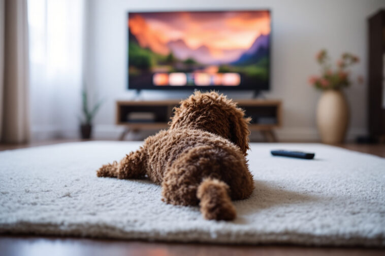 Partir travailler, sortir quelques heures, et soudain la culpabilité qui guette : « Mon chien va-t-il supporter mon absence ? » Beaucoup de propriétaires allument automatiquement la télévision, persuadés qu’un fond sonore familiarisera leur compagnon à la solitude ou dissipera ses angoisses. Mais la télé est-elle vraiment la panacée contre le stress canin ou n’offre-t-elle qu’un réconfort éphémère essentiellement destiné à rassurer l’humain ? Plongée dans les secrets d’ambiance du salon, là où l’image ne fait pas tout mais où le son intrigue nos compagnons à quatre pattes.