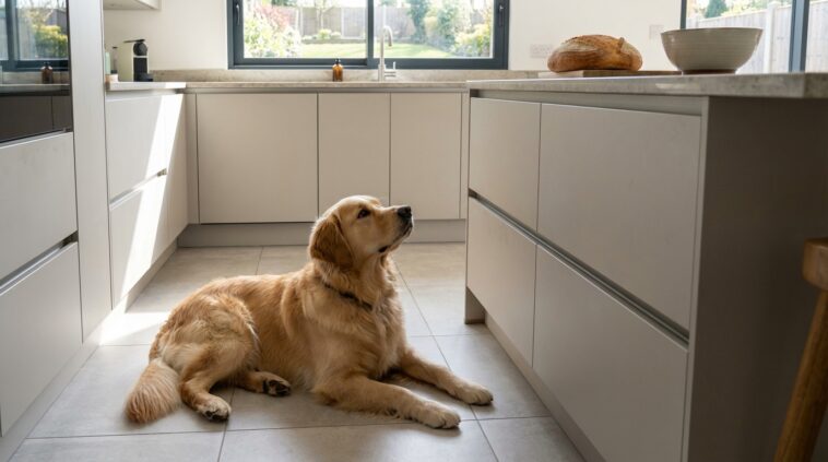 Priver l’animal d’accès sans le réorienter ne génère qu’agitation et frustration. Proposer un tapis de léchage tapissé de fromage frais ou un jouet à fourrer en caoutchouc, placé au congélateur en amont pour prolonger l’effort, offre une vraie fatigue mentale. Le chien se concentre sainement sur sa propre part, paisiblement installé loin du ballet incessant de la cuisine.