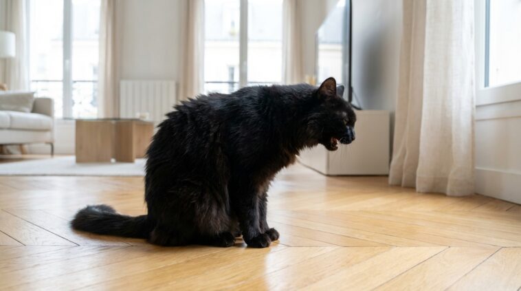 La confusion est légitime et compréhensible pour un œil non averti. Mais pour le bien-être de l’animal, il faut arrêter d’attribuer tous les bruits étranges aux trichobézoards (le nom savant des boules de poils). Lorsqu’un chat tente d’expulser des poils ingérés, le processus s’apparente davantage à des vomissements ou des haut-le-cœur. C’est bruyant, humide, et cela se termine généralement par une expulsion gastrique visible sur votre tapis.