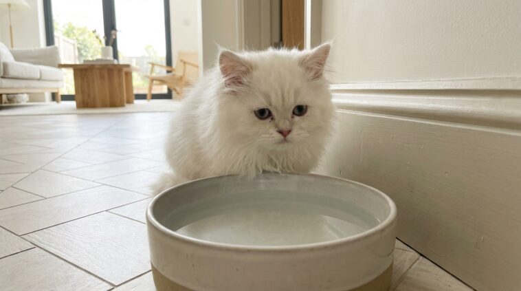 Dans l’impitoyable nature sauvage, l’instinct de préservation dicte des lois très claires. Un félin qui vient d’attraper sa proie sait pertinemment que le cadavre risque fort de contaminer les flaques ou les ruisseaux environnants. Le sang, les bactéries et le début de décomposition représentent un danger sanitaire redoutable pour tout point d’eau situé à proximité immédiate de la zone de repas. Le chat est biologiquement programmé pour ne pas boire là où il mange. Dès lors, lorsque vous déposez gentiment un bol d’eau bien fraîche à quelques centimètres seulement de sa gamelle de nourriture, son cerveau primaire déclenche une inévitable alerte de toxicité. Cette proximité artificielle rend l’eau instantanément suspecte à ses yeux. Voilà exactement pourquoi l’eau à moitié croupie du balcon semblera toujours infiniment plus digne de confiance que ce breuvage de roi touchant presque sa pâtée.