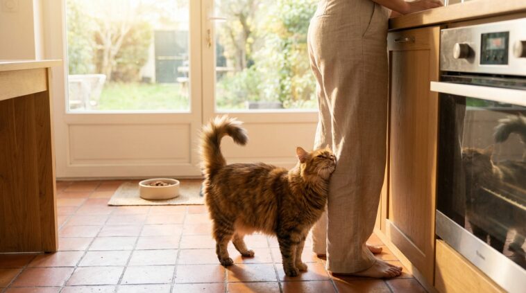 C’est ici qu’une erreur fréquente est commise : penser qu’il réclame à manger et courir remplir sa gamelle pour faire cesser les miaulements ou les sollicitations peut être contre-productif. En ignorant cette interaction sociale pour ne donner que des croquettes, on risque d’augmenter l’anxiété de l’animal, qui n’aura pas eu sa dose de réassurance. Le chat peut alors devenir plus vocal, non par faim, mais parce que son besoin de valider le lien affectif n’a pas été comblé.