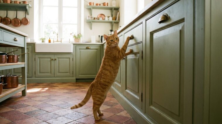 Dans la nature, une proie se cache souvent dans un terrier ou une cavité sombre. Votre placard sous l’évier devient donc, par extension, le terrier le plus fascinant du salon. Des statistiques vétérinaires mettent d’ailleurs en lumière un phénomène massif : 72 % des chats d’intérieur ouvrent ou essayent d’ouvrir régulièrement portes et placards pour satisfaire ce besoin impérieux de chasser et de contrôler leur environnement. Ce n’est pas un caprice, c’est une nécessité comportementale.